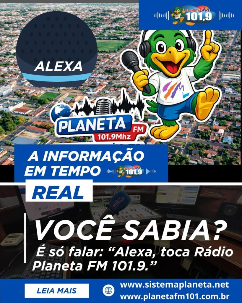 Disponível na Alexa, a Planeta FM fortalece sua presença digital e aproxima ainda mais o público da programação. Agora ficou ainda mais fácil curtir a programação da Rádio Planeta FM 101.9! A rádio que você já ama está disponível também na Alexa, levando música, informação e entretenimento para dentro da sua casa com apenas um comando de voz. É praticidade total para quem não abre mão de estar sempre sintonizado. Com a Alexa, é só dizer “Alexa, toca Rádio Planeta FM 101.9” e pronto! Em segundos, você já está conectado à melhor programação, com sucessos que fazem parte do seu dia, locutores que são a sua companhia e aquela vibe que só a Planeta FM tem. Seja de manhã, à tarde ou à noite, no trabalho ou em casa, a Rádio Planeta FM 101.9 na Alexa está sempre com você. Mais moderna, mais acessível e mais próxima do ouvinte. Experimente e leve a Planeta FM para todos os momentos do seu dia! A Rádio Planeta FM está em todas as plataformas!Acesse também pelo site: sistemaplaneta.net e planetafm101.com.br com as principais noticias.