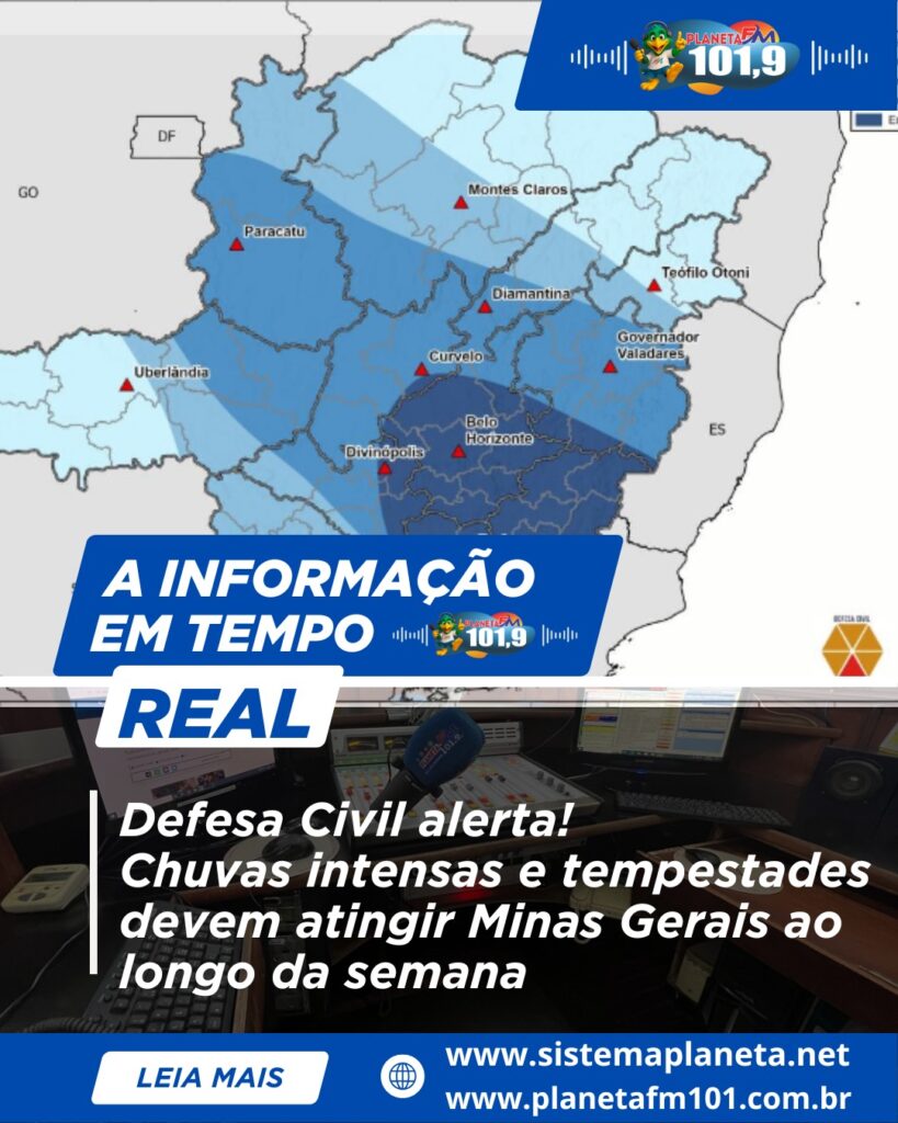 Defesa Civil alerta! Chuvas intensas e tempestades devem atingir Minas Gerais ao longo da semana