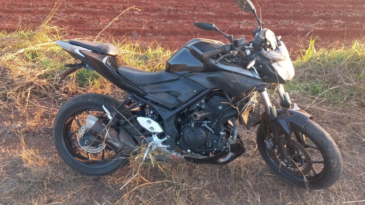 A Polícia Militar Rodoviária foi acionada e compareceu ao local de um sinistro de trânsito, envolvendo queda de veículo. No local, os militares encontraram a motocicleta Yamaha/MT 03, de cor preta, danificada e caída na faixa de domínio, fora da pista de rolamento. A condutora, que também era a vítima, já estava sendo atendida pela equipe do Corpo de Bombeiros Militar.