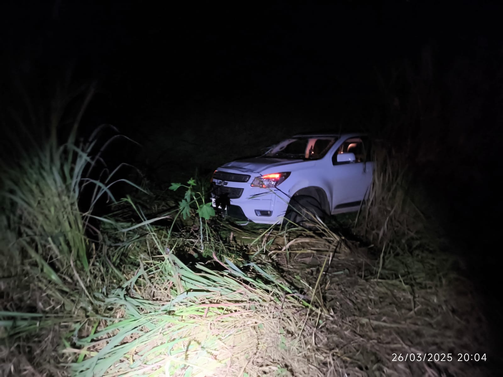 No local, os militares encontraram uma caminhonete GM/S10, de cor branca, tombada na faixa de domínio do DNIT.