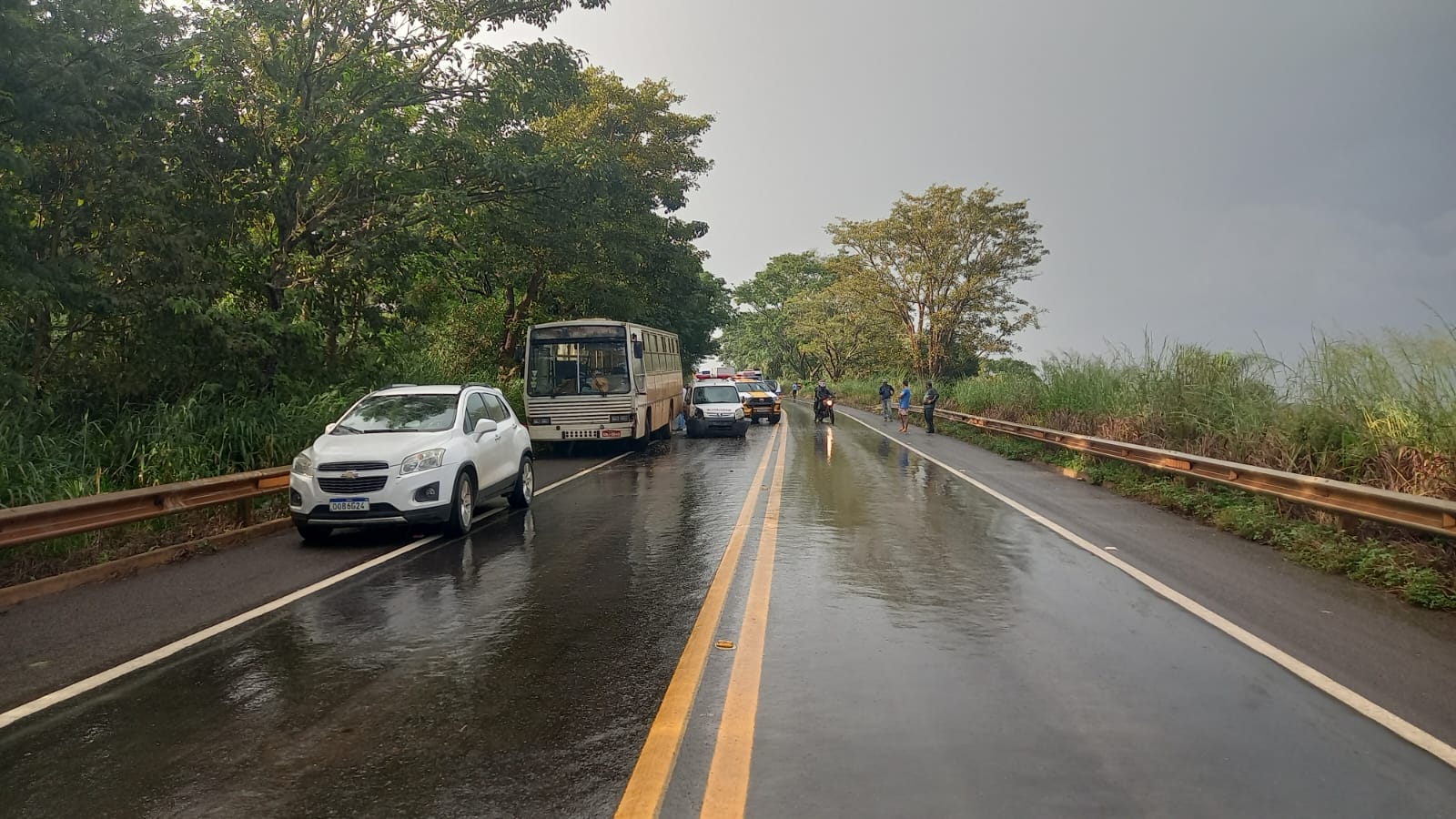 A Polícia Militar Rodoviária atendeu a uma ocorrência de engavetamento envolvendo quatro veículos — uma caminhonete Peugeot, uma Chevrolet Tracker, e dois ônibus M. Benz — na BR-354, no trecho entre Patos de Minas e Lagoa Formosa.