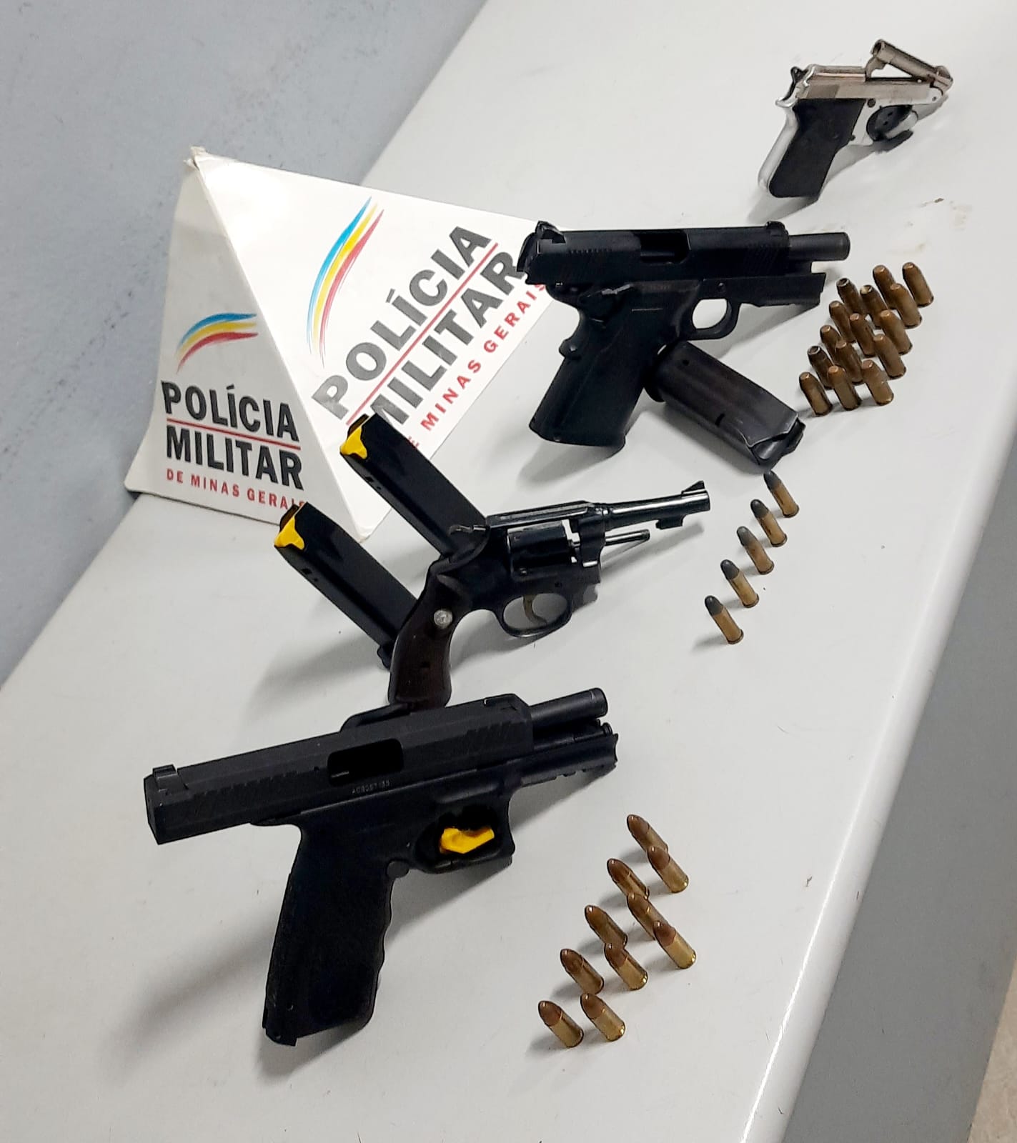 Na segunda-feira (28), a Polícia Militar de Minas Gerais averiguou uma denúncia anônima recebida pelo Disque Denúncia Unificado (181), informando que os proprietários de uma oficina estariam armazenando quatro armas de fogo em seu escritório, supostamente utilizadas para ameaçar terceiros.