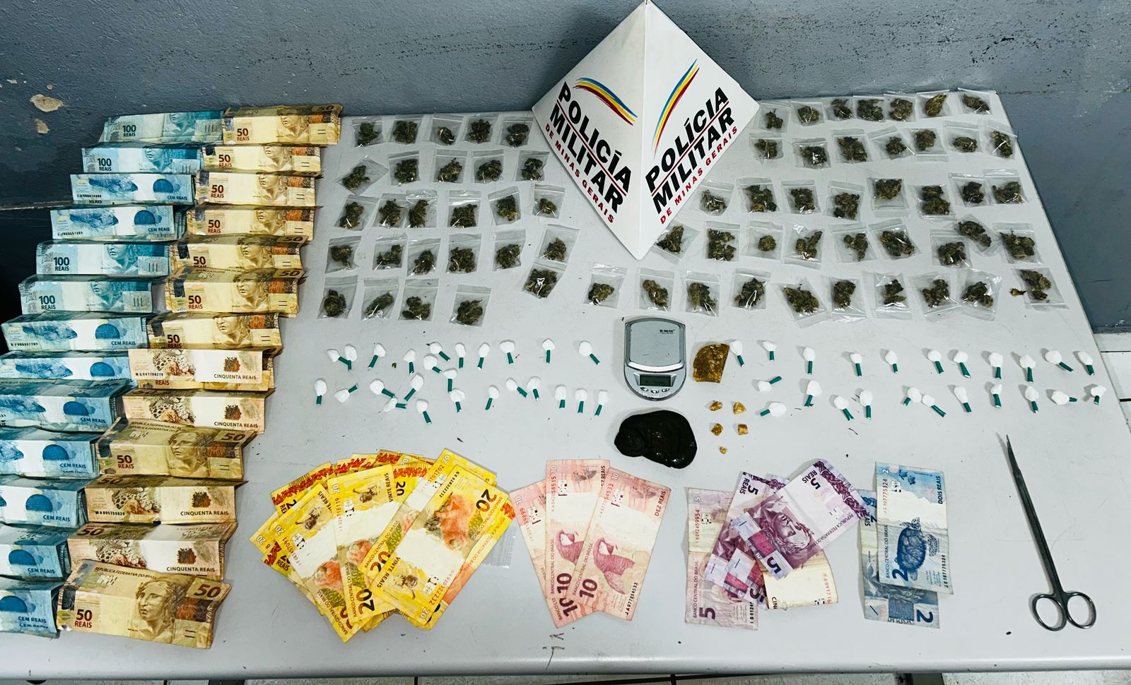 Casal é preso em flagrante com drogas, dinheiro e materiais para comercialização no bairro Nossa Senhora Aparecida