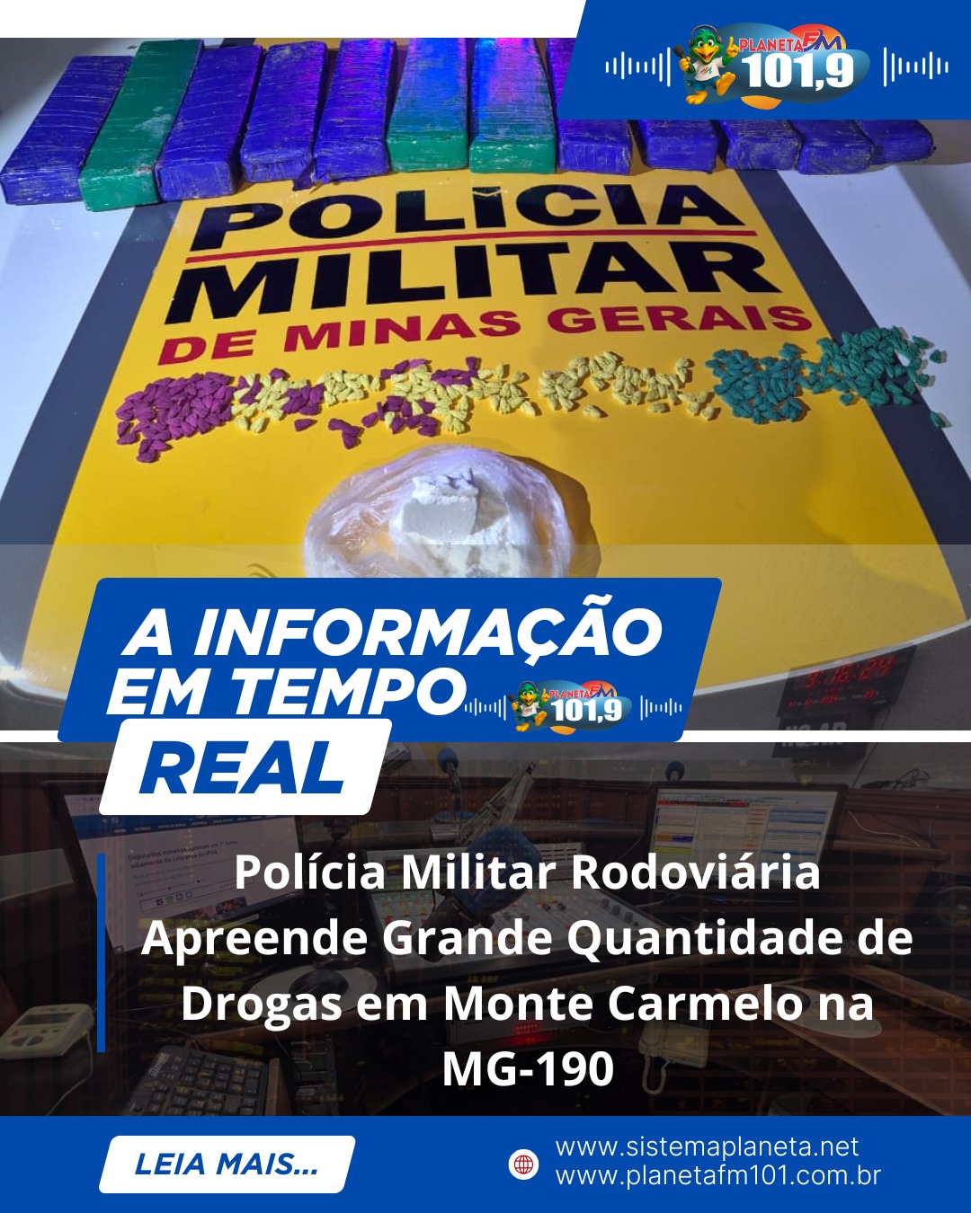 A Polícia Militar Rodoviária apreendeu, na noite de quarta-feira (10 de dezembro), uma grande quantidade de drogas durante abordagem a um veículo VW/Voyage na MG-190, em Monte Carmelo. O automóvel era ocupado por um casal, o homem de 34 anos e a mulher de 33 anos, que demonstraram nervosismo e tentaram esconder uma bolsa no interior do carro, o que motivou a busca minuciosa.