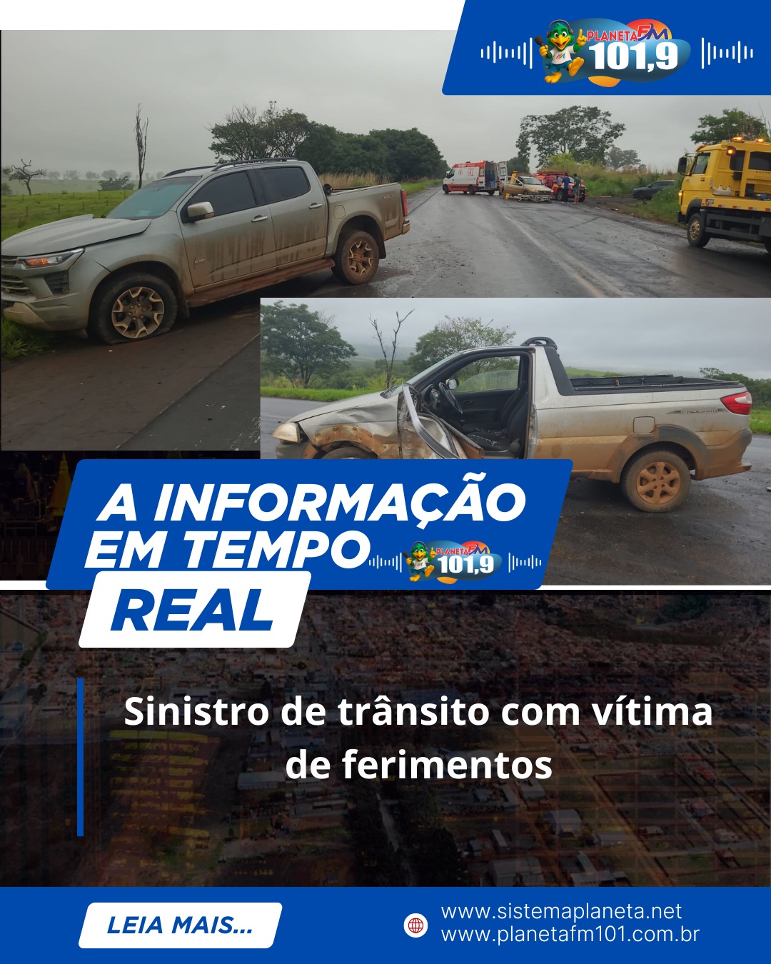 O condutor da Fiat/Strada sofreu perda momentânea da consciência, a qual retornou após alguns instantes. Ele apresentou cortes no couro cabeludo e nos lábios, além de escoriações pelo corpo, sem fraturas visíveis. Houve necessidade de desencarceramento pela equipe do Corpo de Bombeiros, pois a porta da caminhonete ficou presa devido à colisão. Após ser retirado do veículo, ele foi transportado pelo SAMU para o Hospital Regional em Patos de Minas.